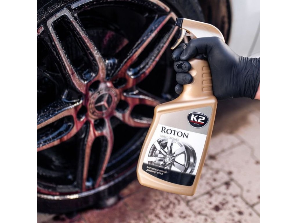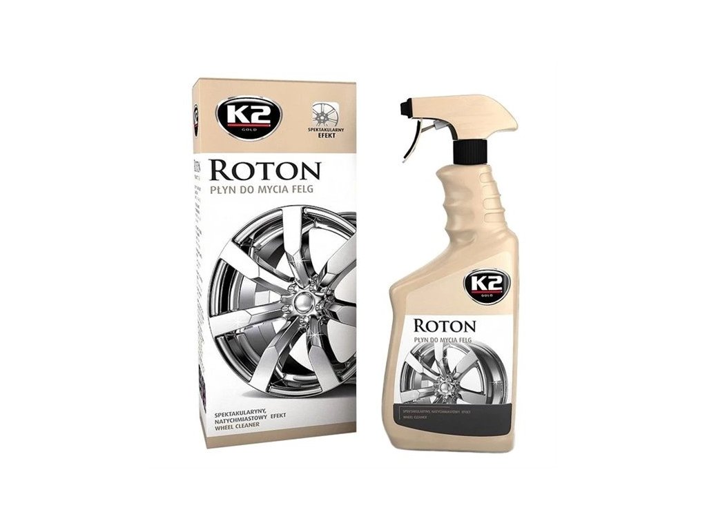 Velmi účinný detailingový čistič hliníkových kol K2 ROTON neobyčejně odstraňuje a proniká do neústupné nečistoty, včetně kalů z brzdových destiček a z prašných cest.