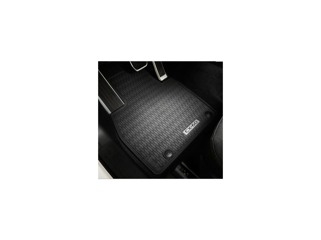 S logem CX-60 na předních rohožích, vyrobeno z vysoce kvalitního 100% recyklovaného plastu, s originálním systémem uchycení rohoží Mazda (čtyři montážní kroužky), vozidla jsou z výroby vybavena háčky pro montáž rohoží na přední straně řidiče a cestující