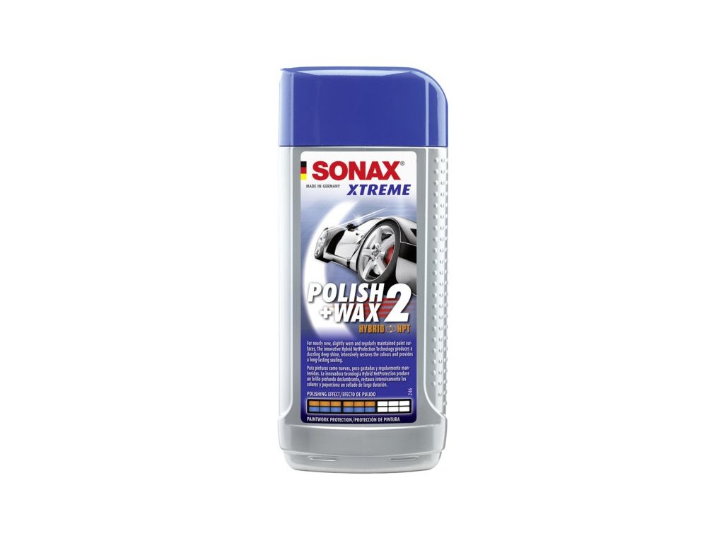 Leštěnka Sonax Xtreme Polish & Wax 2 sensitive je speciální leštící přípravek pro ošetření vyzrálých pastelových a metalizovaných laků a lakovaných plastů. Velice jemné brusné složky odstraní drobné škrábance z laku, oživí barvy a navrátí původní lesk. Díky speciálním NANO voskům je lak dlouhodobě chráněn před povětrnostními vlivy. Řada Xtreme jsou výrobky pro péči o lak vycházející z receptur na revoluční bázi – Hybrid NetProtection Technology (Hybrid NPT)