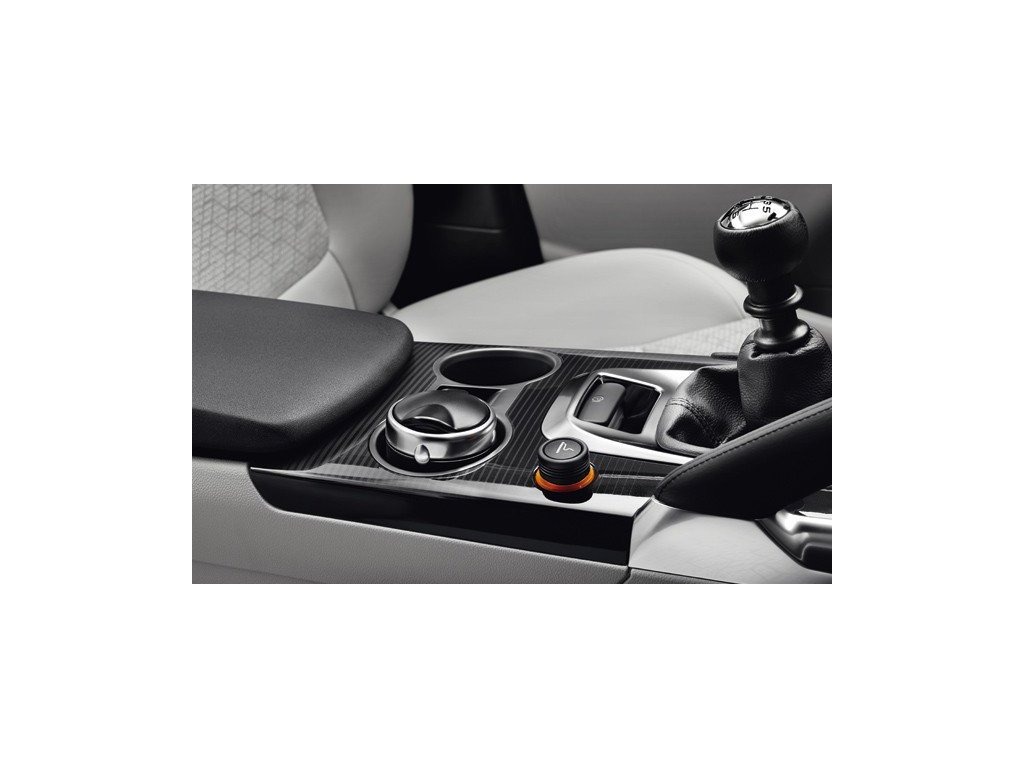 Originální popelník s chromovým prstencem a víčkem se vkládá na místo některého ze dvou držáků na nápoje na středové konzoli a může rovněž sloužit jako odkládací prostor.