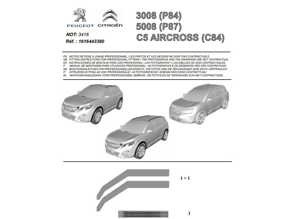Sada dvou originálních deflektorů oken předních dveří, ke vložení do rámu, pro Citroen C5 Aircross, Peugeot 3008 (P84) a 5008 (P87).