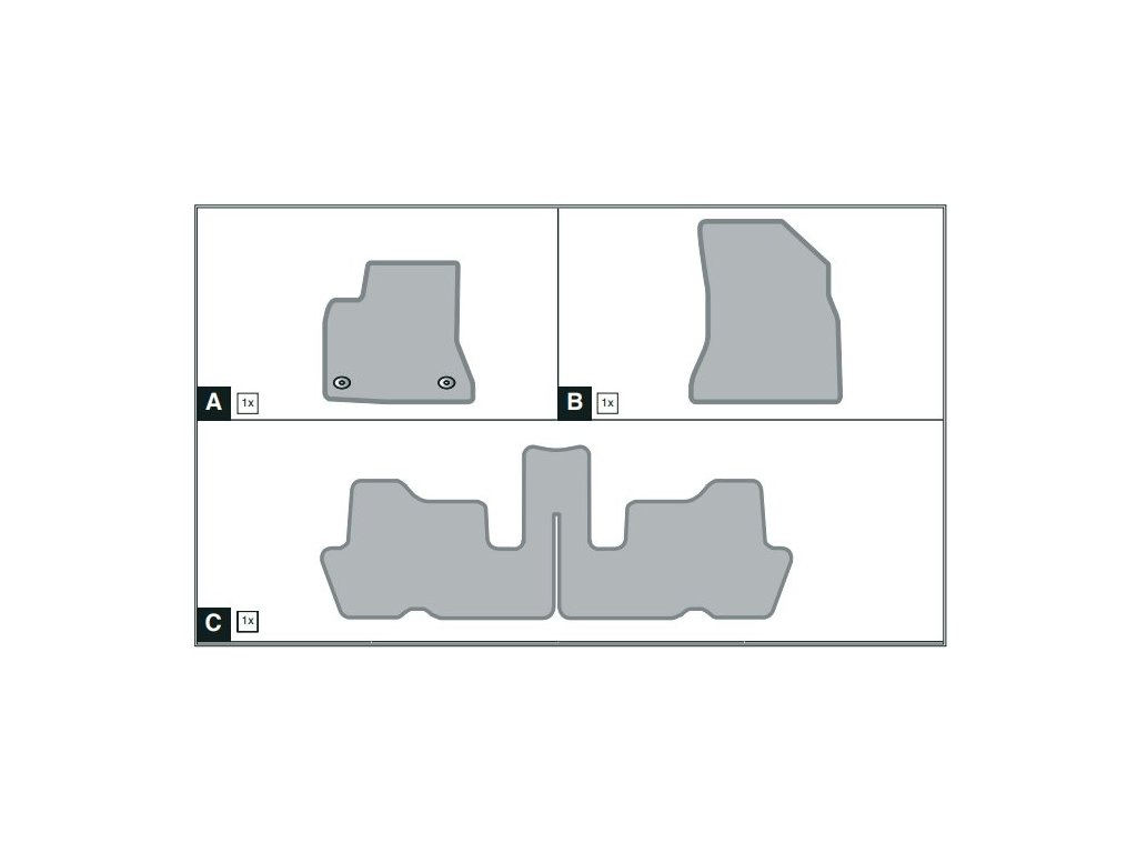 Sada přesných textilních koberců pro Citroën C4 Picasso - Spacetourer a C4 Grand Picasso - Spacetourer druhé generace.Sada dvou prošívaných koberců pro přední část a jednodílného koberce pro druhou řadu sedadel.