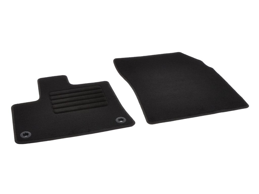 Sada přesných textilních autokoberců Standard, od českého výrobce, v černé barvě s černým přízovým obšitím, zesílením pod pedály a originální fixací.