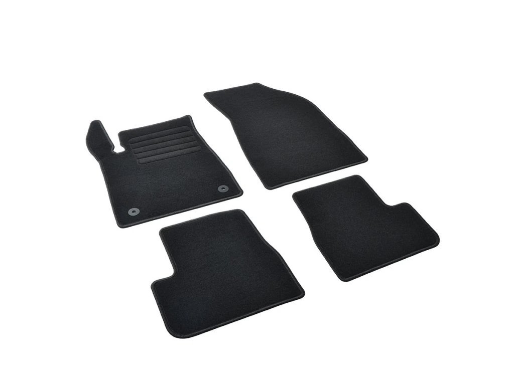 Sada přesných textilních autokoberců Standard, od českého výrobce, v černé barvě s černým přízovým obšitím, zesílením pod pedály a originální fixací.