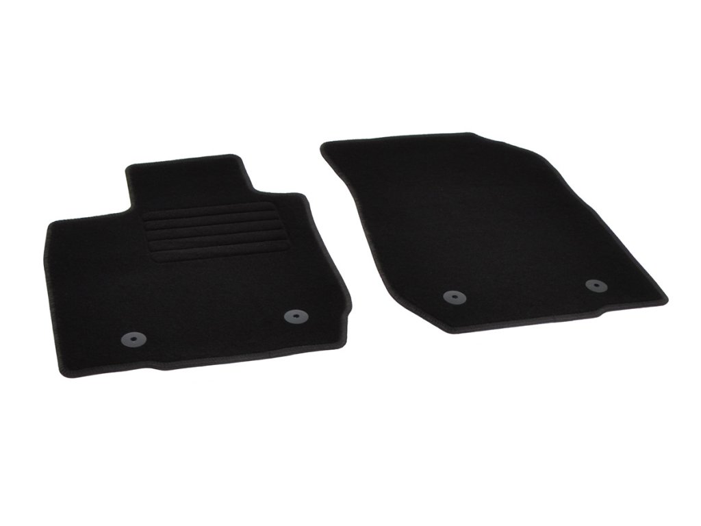 Sada přesných textilních autokoberců Standard, od českého výrobce, v černé barvě s černým přízovým obšitím, zesílením pod pedály a originální fixací.