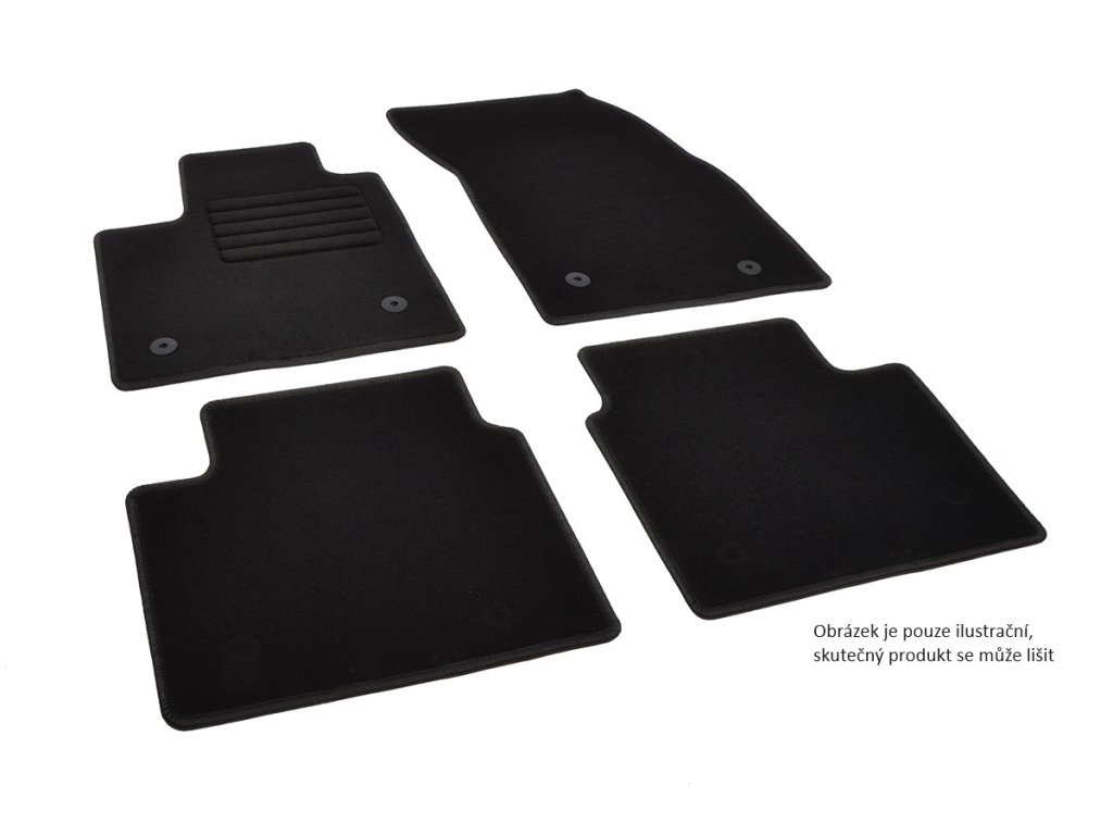 Sada přesných textilních autokoberců Standard, od českého výrobce, v černé barvě s černým přízovým obšitím, zesílením pod pedály a originální fixací.