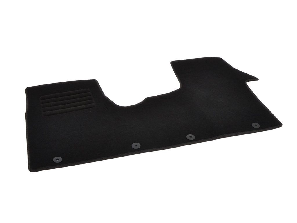 Sada přesných textilních autokoberců Standard, od českého výrobce, v černé barvě s černým přízovým obšitím, zesílením pod pedály a originální fixací.