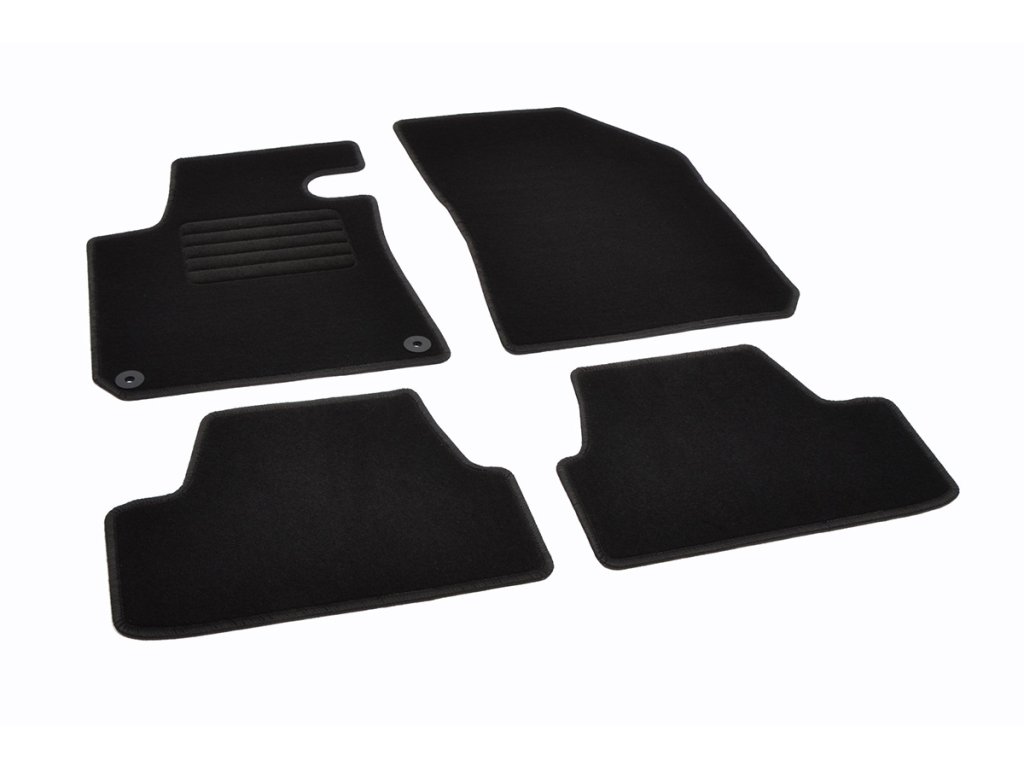 Sada přesných textilních autokoberců Standard, od českého výrobce, v černé barvě s černým přízovým obšitím, zesílením pod pedály a originální fixací.