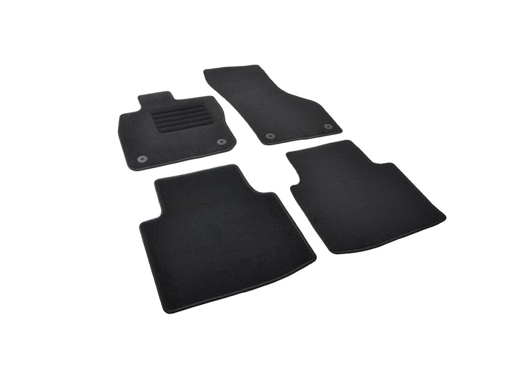 Sada přesných textilních autokoberců Standard, od českého výrobce, v černé barvě s černým přízovým obšitím, zesílením pod pedály a originální fixací.