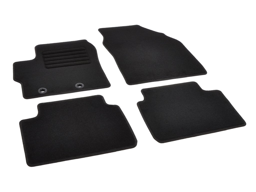 Sada přesných textilních autokoberců Standard, od českého výrobce, v černé barvě s černým přízovým obšitím, zesílením pod pedály a originální fixací.