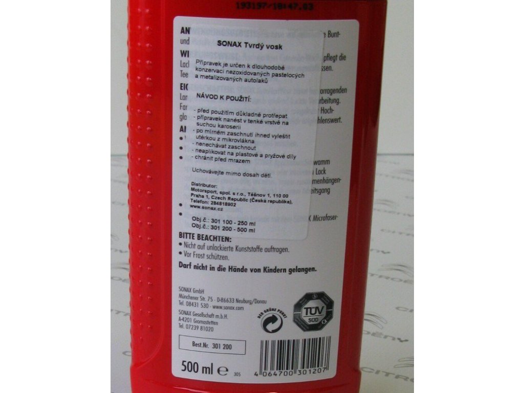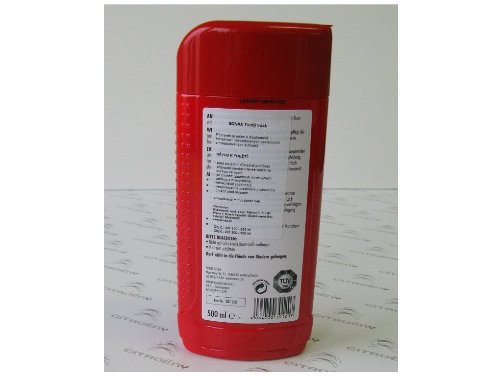 Tvrdý vosk SONAX "Super Liquid" je extrémně kvalitní leštící a konzervační prostředek k ošetření lesklých, ale již vyzrálých pastelových a metalizovaných laků. Zajišťuje dlouhodobou ochranu a dodává vysoký lesk. Neobsahuje brusné části.